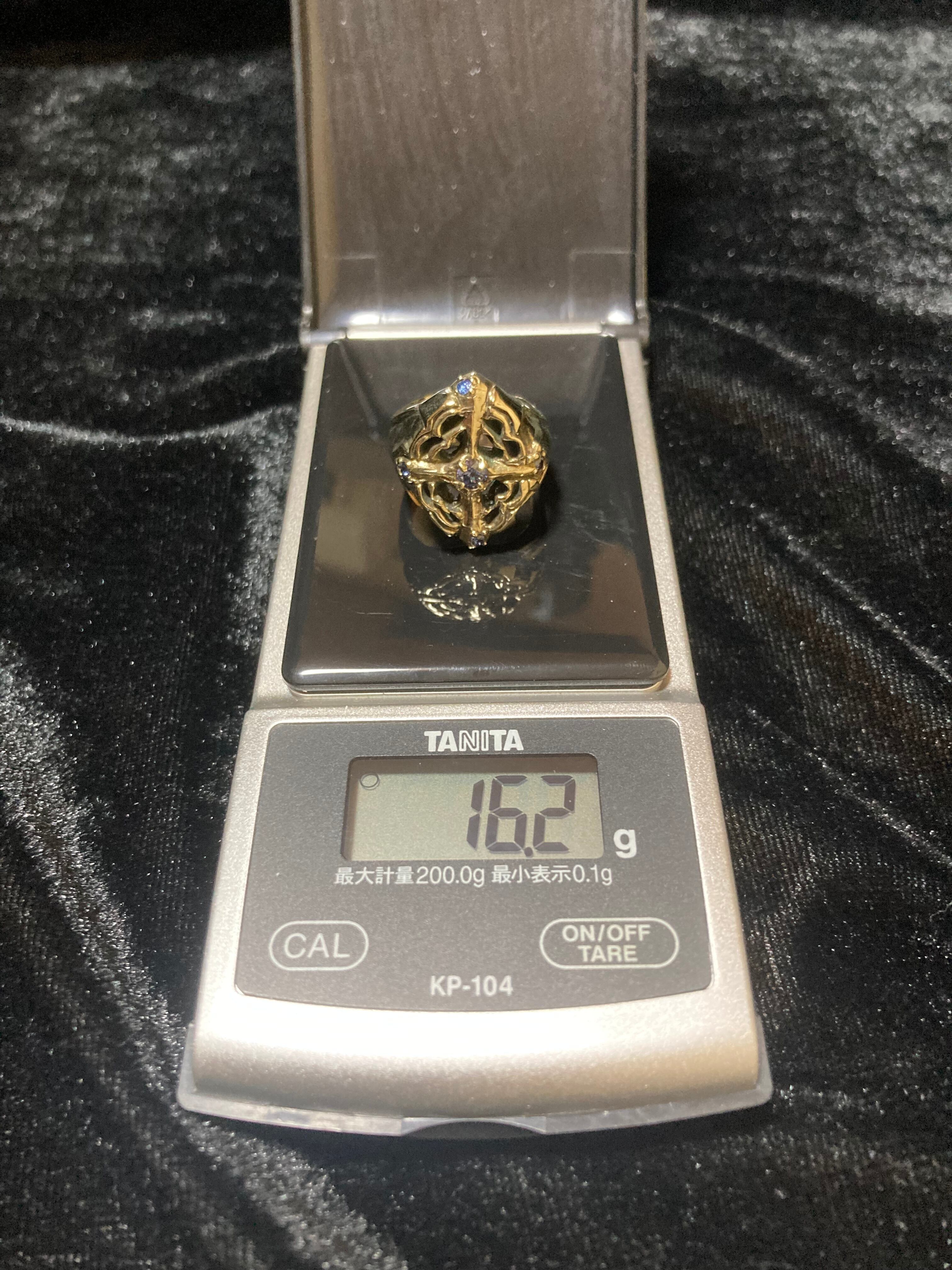 存在感のあるクロスに中央席にインパクト抜群の4mm宝石。脇石にワンポイントで4箇所ブルージルコニアを散りばめました。